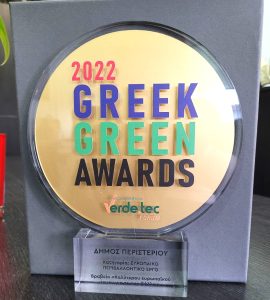 Περιβαλλοντικό βραβείο «Greek Green Awards 2022» απέσπασε ο Δήμος Περιστερίου, στο πλαίσιο της 4ης Διεθνούς Έκθεσης Περιβάλλοντος VERDE-TEC, η οποία είχε ως αντικείμενο τις τεχνολογίες περιβάλλοντος με επίκεντρο τις πράσινες τεχνολογίες, την κυκλική οικονομία και τις smart cities.