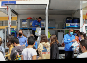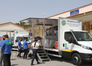 Το όχημα του «TheGreenCity», το οποίο έχει μετατραπεί σε κινητή μονάδα συλλογής και διαλογής ανακυκλώσιμων υλικών (Κινητό Πράσινο Σημείο-ΚΠΣ) σταθμεύει καθημερινά σε κεντρικά σημεία των 66 Δήμων της Αττικής.