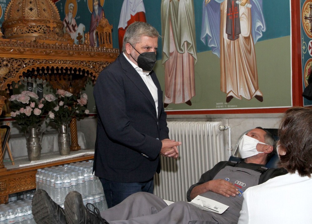 «Στον ναό μας κάνουμε δύο ή τρεις φορές το χρόνο αιμοδοσία, στην οποία μετέχουν ως επί το πλείστον εργαζόμενοι οι οποίοι αφήνουν την εργασία τους για τον ύψιστο αυτό σκοπό τον οποίον αισθάνονται απέναντι στο συνάνθρωπό δείχνοντας αλληλεγγύη. Έρχεται και η Περιφέρεια να μας συνδράμει υλικοτεχνικά προκειμένου να ανταποκριθούμε και εμείς στο δύσκολο αλλά θεάρεστο και πνευματικό αυτό έργο και να πούμε ότι ο πρώτος που έδωσε το αίμα του είναι ο Χριστός μας».