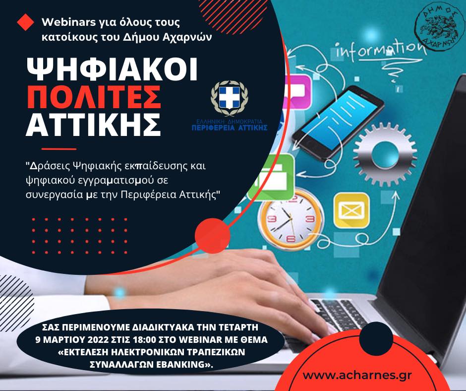 Σας προσκαλούμε την Τετάρτη 06 Απριλίου 2022 στις 19:00 στο webinar με θέμα «Βασικές δεξιότητες για τη χρήση του Διαδικτύου», το οποίο θα μεταδοθεί ζωντανά μέσα από το κανάλι μας στο YouTube και στη σελίδα μας στο Facebook.