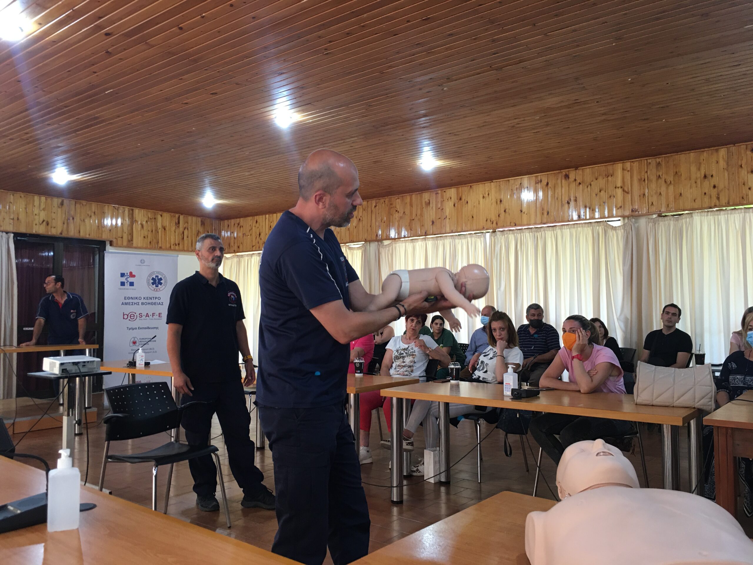 Οι διασώστες του ΕΚΑΒ έκαναν μια πολύ ενδιαφέρουσα και αναλυτική παρουσίαση καρδιοαναπνευστικής αναζωογόνησης, πρώτων βοηθειών και χρήσης αυτόματου εξωτερικού απινιδωτή σε όσους παρευρέθηκαν.