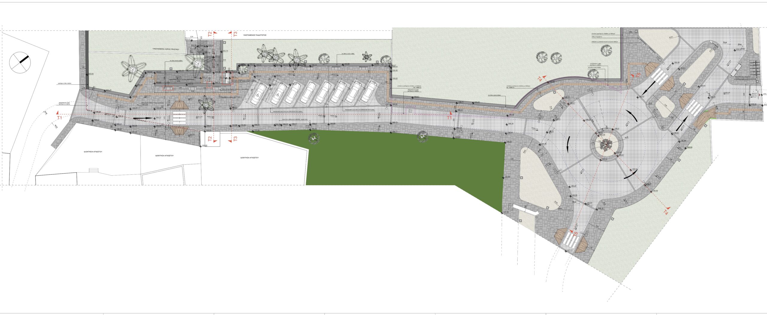 Η πρόταση επέμβασης αφορά τη χωροθέτηση σημείων στάθμευσης Ι.Χ., τη διαμόρφωση δρόμου ήπιας κυκλοφορίας οχημάτων για την ασφαλή πρόσβαση στις θέσεις στάθμευσης, τη δημιουργία πεζοδρομίων, περιοχών πλακοστρώσεων, φυτεύσεων και χώρων στάσης των περιπατητών με χρήση ψυχρών υλικών και τον απαραίτητο ηλεκτροφωτισμό σύμφωνα με την Η/Μ Μελέτη. Επίσης οδική σήμανση ασφαλείας και απαραίτητες διαγραμμίσεις και διαβάσεις σύμφωνα με τη Μελέτη Οδοποιίας.