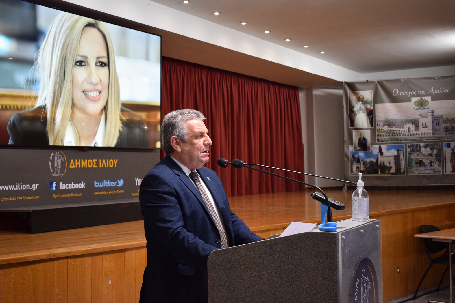 Στον χαιρετισμό του ο Δήμαρχος Ιλίου Νίκος Ζενέτος μίλησε με θερμά λόγια για τη στάση ζωής της Φώφης Γεννηματά, τους διαρκείς αγώνες της για τα ανθρώπινα δικαιώματα και ιδιαίτερα των γυναικών και την πολιτική παρακαταθήκη ευγένειας, αξιών, ευθύνης και αξιοπρέπειας που κληροδότησε στον τόπο. Παράλληλα, τόνισε ότι σε όλη την πολιτική διαδρομή της είχε ως προτεραιότητα τη βελτίωση των δημόσιων δομών υγείας ενώ πίστευε απόλυτα στην ανάγκη δημιουργίας Κέντρων υγείας και τοπικών Δικτύων ολοκληρωμένων υπηρεσιών σε όλους τους Δήμους.