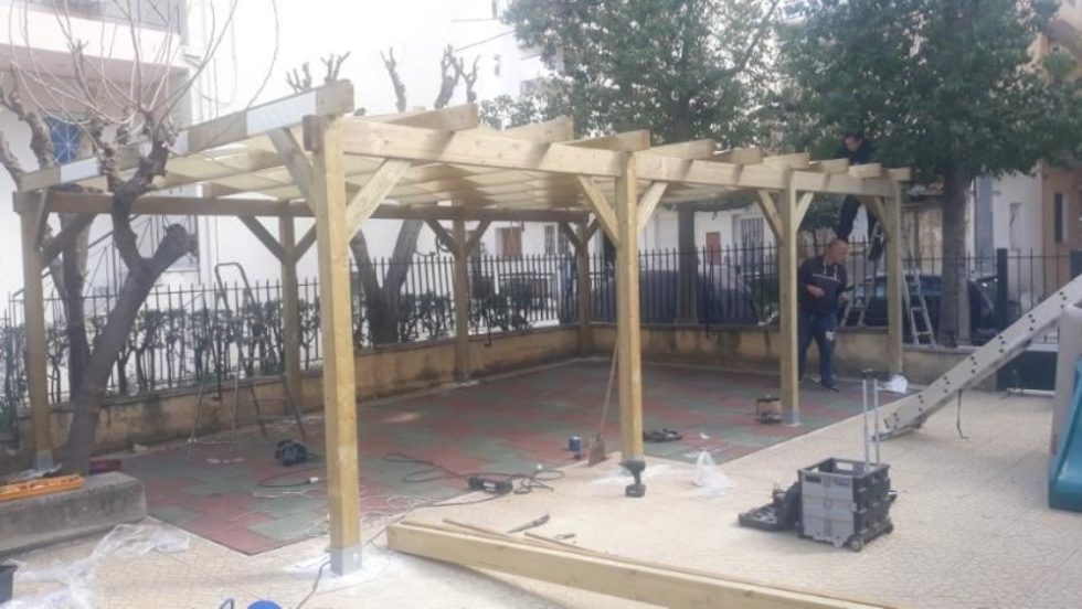 Πέραν των υπολοίπων εργασιών, ο προαύλιος χώρος του 4ου παιδικού σταθμού αποκτά και μια όμορφη πέργκολα.