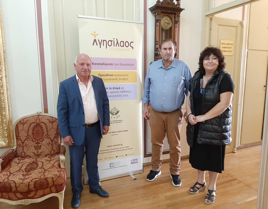 Με τον Πρόεδρο της Περιφερειακή Ομοσπονδία ΑμεΑ Πελοποννήσου Νίκο Καραλή και το μέλος του Δ.Σ. της ΕΣΑμΕΑ Αθανασία Καρούνου συναντήθηκε ο Αναπληρωτής Δημάρχου, Αντιδήμαρχος Γιώργος Φάβας, σήμερα Τρίτη 25 Οκτωβρίου 2022 στο ιστορικό Δημαρχείο της πόλης.
