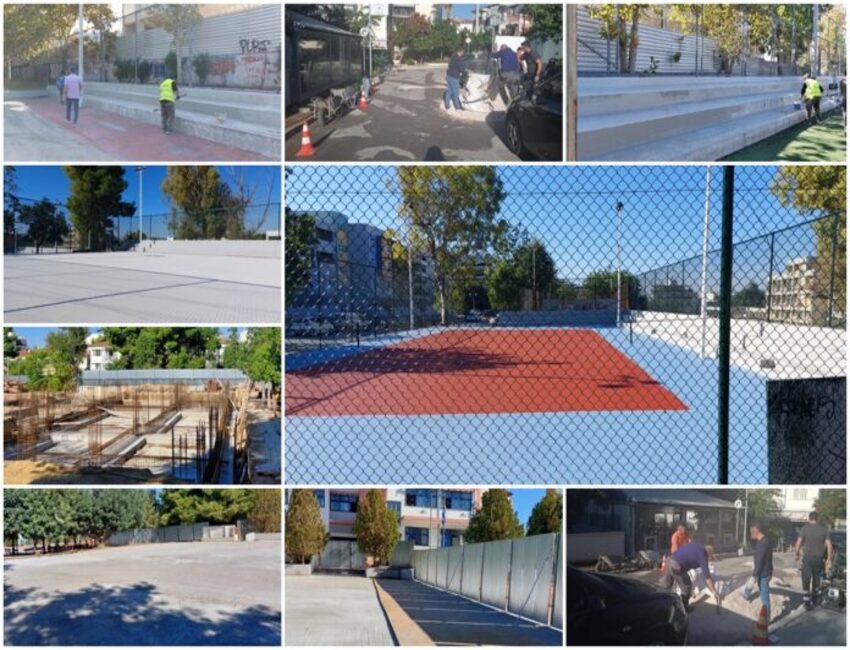 Οι εργασίες αποκατάστασης των φθορών και του καλλωπισμού του περιβάλλοντος χώρου, στους αθλητικούς χώρους επί των οδών Κηφισού και Παπαναστασίου.