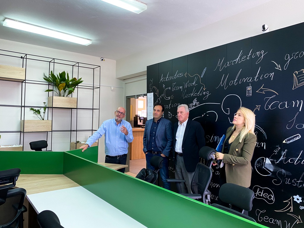 Ακολούθησε επίσκεψη στον κόμβο καινοτομίας και επιχειρηματικότητας Gisemi Hub της e-trikala ΑΕ, όπου ο δ/νων σύμβουλος της δημοτικής εταιρείας κ. Οδ. Ράπτης παρουσίασε προγράμματα που υλοποίησε ή συμμετέχει η εταιρεία. Παρέστησαν επίσης, οι πρόεδροι των τμημάτων ΤΕΦΑΑ και Διαιτολογίας – Διατροφολογίας του Πανεπιστημίου Θεσσαλίας, που εδρεύουν στα Τρίκαλα, κ. ΝΙκ. Διγγελίδης και Θαν. Μανούρας αντιστοίχως, ανταλλάσσοντας απόψεις για ζητήματα σχετικά με την έρευνα στους συγκεκριμένους τομείς.