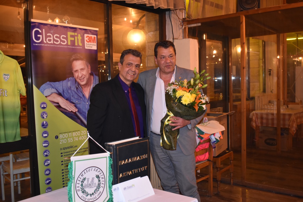 Φιλόξενος οικοδεσπότης της βραδιάς υπήρξε ο Πρόεδρος των Παλαιμάχων Γιάννης Θειακούλης με θερμούς υποστηρικτές τον Δήμο Φυλής και το δίκτυο επισκευής κι αντικατάστασης κρυστάλλων GlassFit.