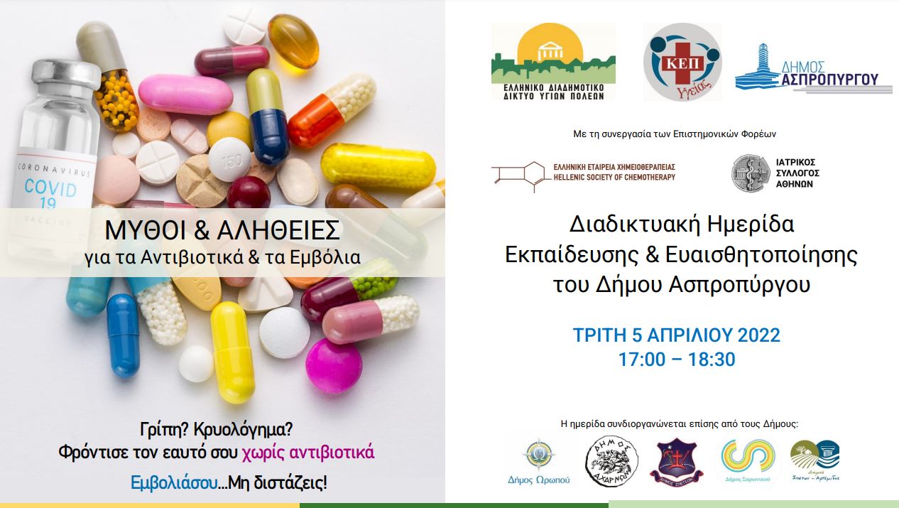 Διαδικτυακή Ημερίδα Ενημέρωσης και Ευαισθητοποίησης των Δημοτών με θέμα: Μύθοι και Αλήθειες για τα Αντιβιοτικά και τα Εμβόλια