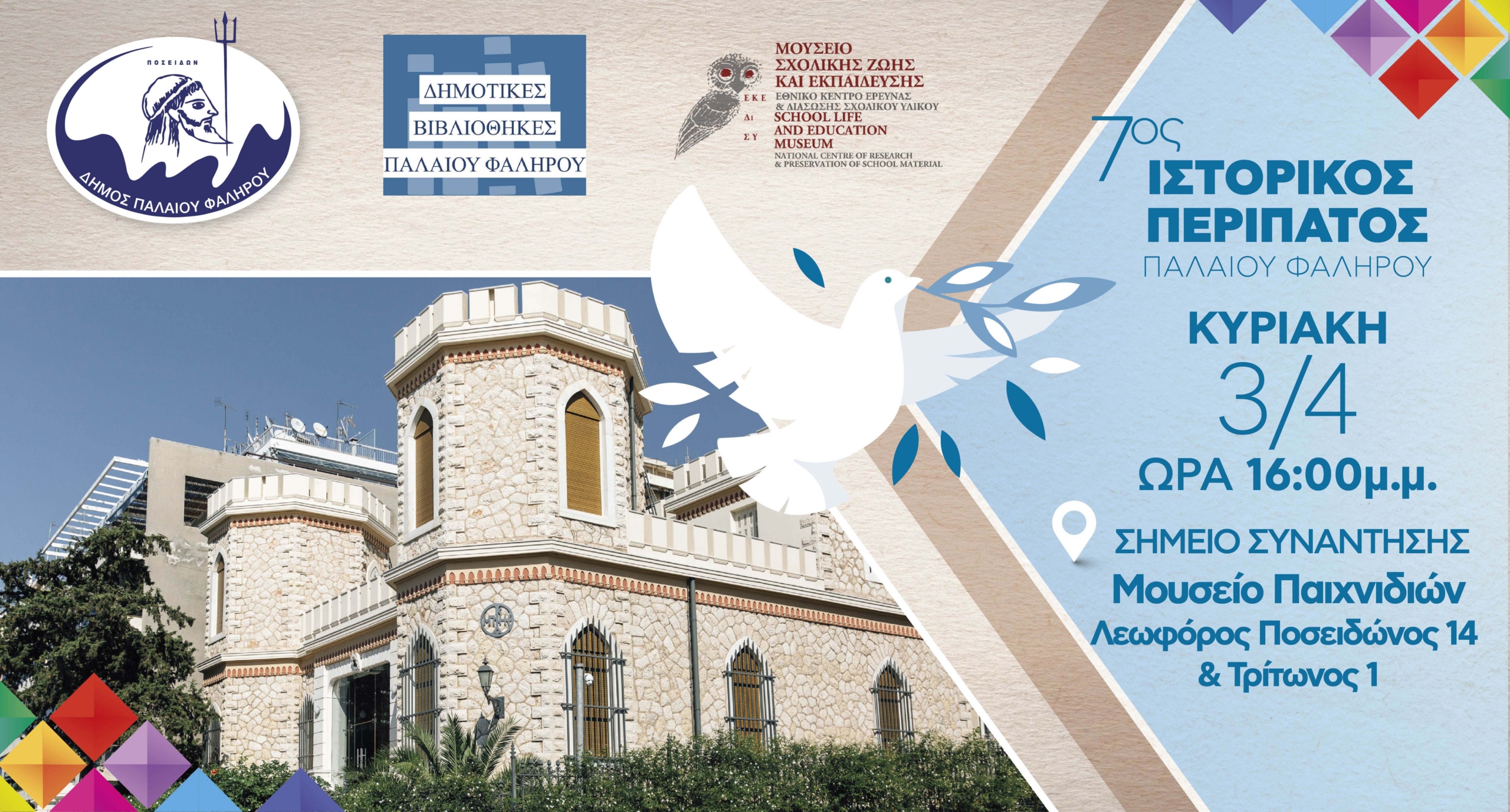 Ο Δήμαρχος Παλαιού Φαλήρου, Γιάννης Φωστηρόπουλος, σας προσκαλεί στον 7o Ιστορικό Περίπατο που θα διεξαχθεί την Κυριακή 3 Απριλίου, στις 16.00’, με μια ξεχωριστή ξενάγηση, σε σημαντικά τοπόσημα της πόλης μας.