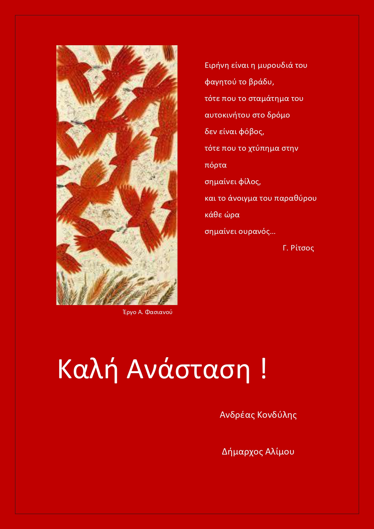 Ευχές Δημάρχου Αλίμου, Ανδρέα Κονδύλη