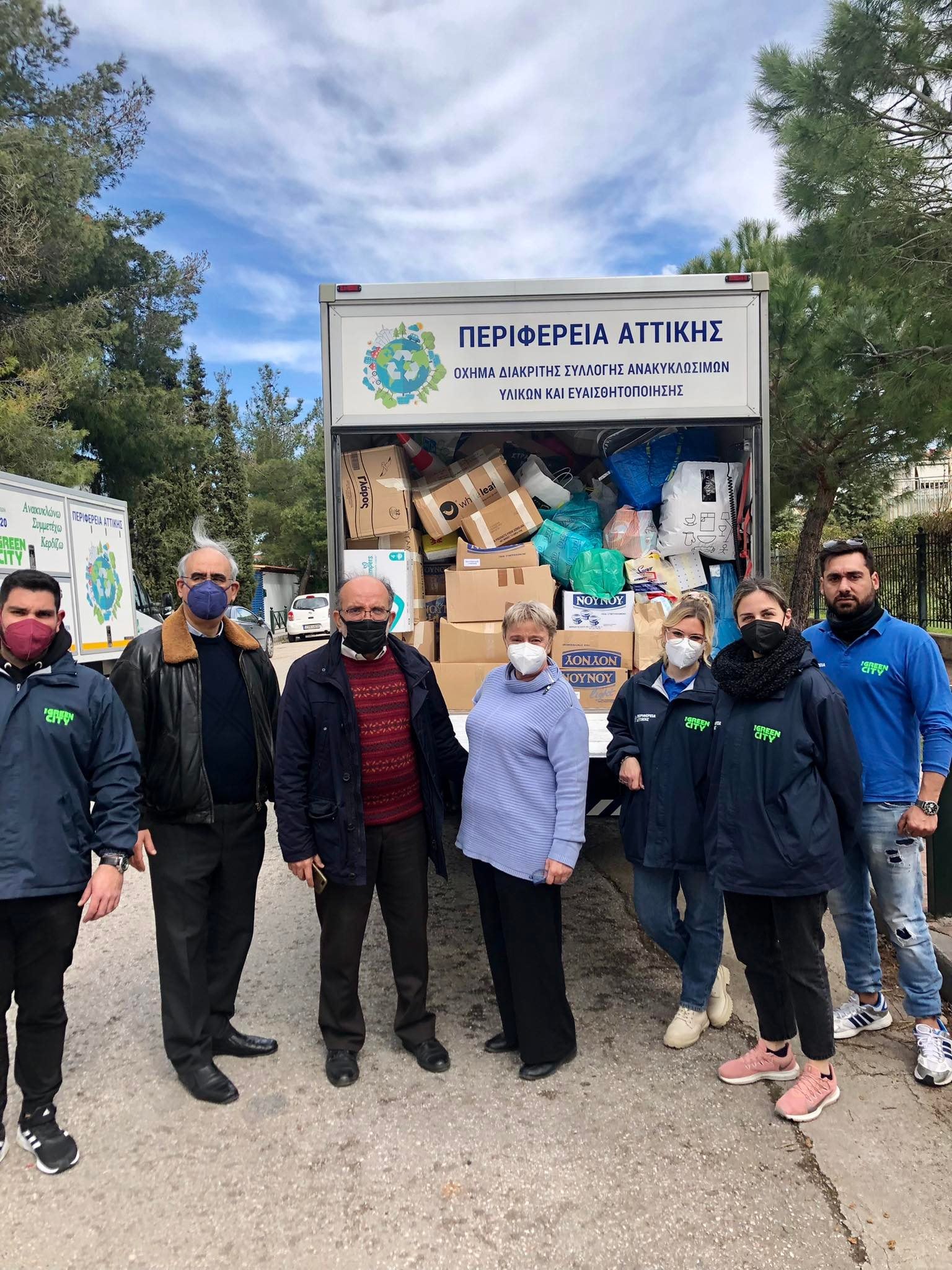 Πέντε φορτηγά της Περιφέρειας Αττικής γέμισαν με φαρμακευτικό υλικό, παιδικές τροφές, είδη ατομικής υγιεινής και κλινοσκεπάσματα προκειμένου να φτάσουν στις εμπόλεμες περιοχές που τα έχουν ανάγκη.