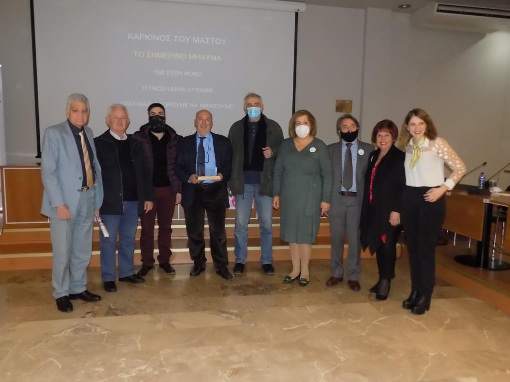 Ολοκληρώνοντας την ομιλία του, ο Δρ. Βασίλειος Αρμόνης βραβεύτηκε από τον Αντικαρκινικό Σύλλογο “ΚερδίΖΩ”.