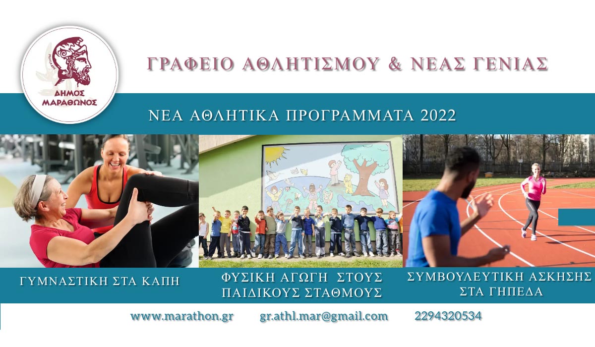 Το Γραφείο Αθλητισμού & Νέας Γενιάς του Δήμου Μαραθώνος ξεκινά νέα αθλητικά προγράμματα για το 2022: