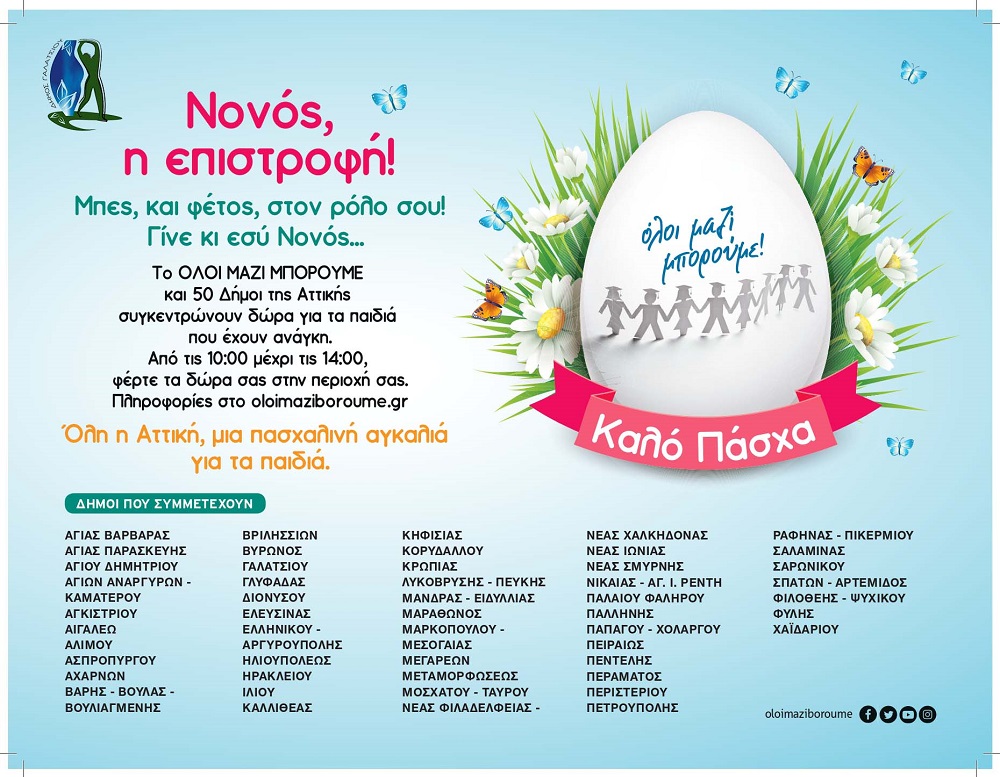 Ο Δήμος Γαλατσίου & το Κοινωνικό Παντοπωλείο, σε συνεργασία με το «Όλοι Μαζί Μπορούμε», διοργανώνει δράση με στόχο τη συγκέντρωση πασχαλινών δώρων