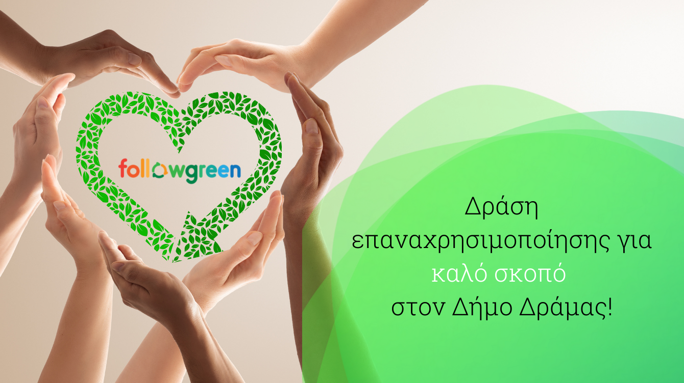 Ο Δήμος Δράμας με αίσθημα ευθύνης απέναντι στην αναγκαιότητα για ενημέρωση και ευαισθητοποίηση του κοινού αναφορικά με τη μείωση των αποβλήτων και την επαναχρησιμοποίηση, οργανώνει ειδική περιβαλλοντική δράση στον Δήμο σε συνεργασία με τη δημοτική πλατφόρμα επιβράβευσης της ανακύκλωσηςFollowgreen.gr/drama.