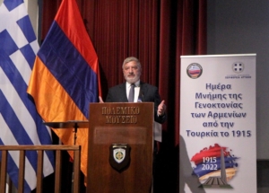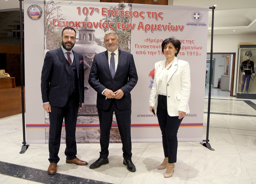 Στις επετειακές εκδηλώσεις που πραγματοποιήθηκαν υπό τη διοργάνωση της Περιφέρειας Αττικής με αφορμή την 107η επέτειο της Γενοκτονίας Των Αρμενίων, παραβρέθηκε σήμερα το πρωί ο Περιφερειάρχης Αττικής Γ. Πατούλης. Η κεντρική εκδήλωση πραγματοποιήθηκε στην αίθουσα Ιωάννης Καποδίστριας του Πολεμικού Μουσείου. Χαιρετισμό απηύθυναν, ο Περιφερειάρχης Αττικής, εκπρόσωπος της Ελληνικής Κυβέρνησης, της Βουλής, ο Πρέσβης της Δημοκρατίας της Αρμενίας Τιγκράν Μκρτσιάν, ο εκπρόσωπος της Αρμενικής Νεολαίας Ελλάδος Σάμουελ Σαμουελιάν, ενώ Κεντρικός ομιλητής ήταν ο πρύτανης του διπλωματικού σώματος και πρέσβης της Κυπριακής Δημοκρατίας στην Ελλάδα Κυριάκος Κενεβέζος. Μετά τη λήξη της τελετής ακολούθησε κατάθεση στεφάνων στο μνημείο του Άγνωστου Στρατιώτη.