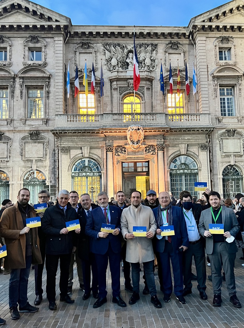 «Η Ευρωπαϊκή Τοπική Αυτοδιοίκηση ενωμένη βροντοφωνάζει, ‘’όχι στον πόλεμο’’ και εκφράζει την αλληλεγγύη της στην Ουκρανία, διεκδικώντας ένα ειρηνικό μέλλον για τους ευρωπαϊκούς λαούς. Όλοι μαζί στέλνουμε ένα μήνυμα ενότητας και αποφασιστικότητας ενάντια σε κάθε μορφή βίας που απειλεί το διεθνές δίκαιο, την ελευθερία και την ανεξαρτησία κυρίαρχων κρατών, ενώ ταυτόχρονα δημιουργεί κλυδωνισμούς στην παγκόσμια ειρήνη και σταθερότητα. Όλοι οι  συνάδελφοι αυτοδιοικητικοί από όλη την Ευρώπη  ενώσαμε τις φωνές μας στο πλαίσιο της συμβολικής διαμαρτυρίας που πραγματοποιήθηκε έξω από το δημαρχείο της Μασσαλίας και διατυπώσαμε το κοινό αίτημα  να επικρατήσει η Ειρήνη και η αδελφοσύνη»