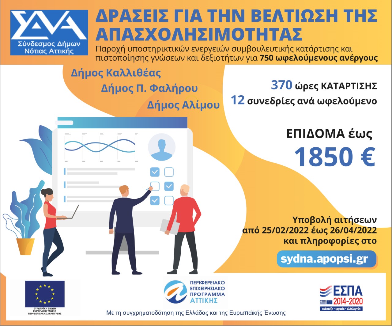 Παράταση υποβολής αιτήσεων για ανέργους του Παλαιού Φαλήρου έως 26/4/22 με το Πρόγραμμα κατάρτισης Σ.Υ.Δ.Ν.Α.