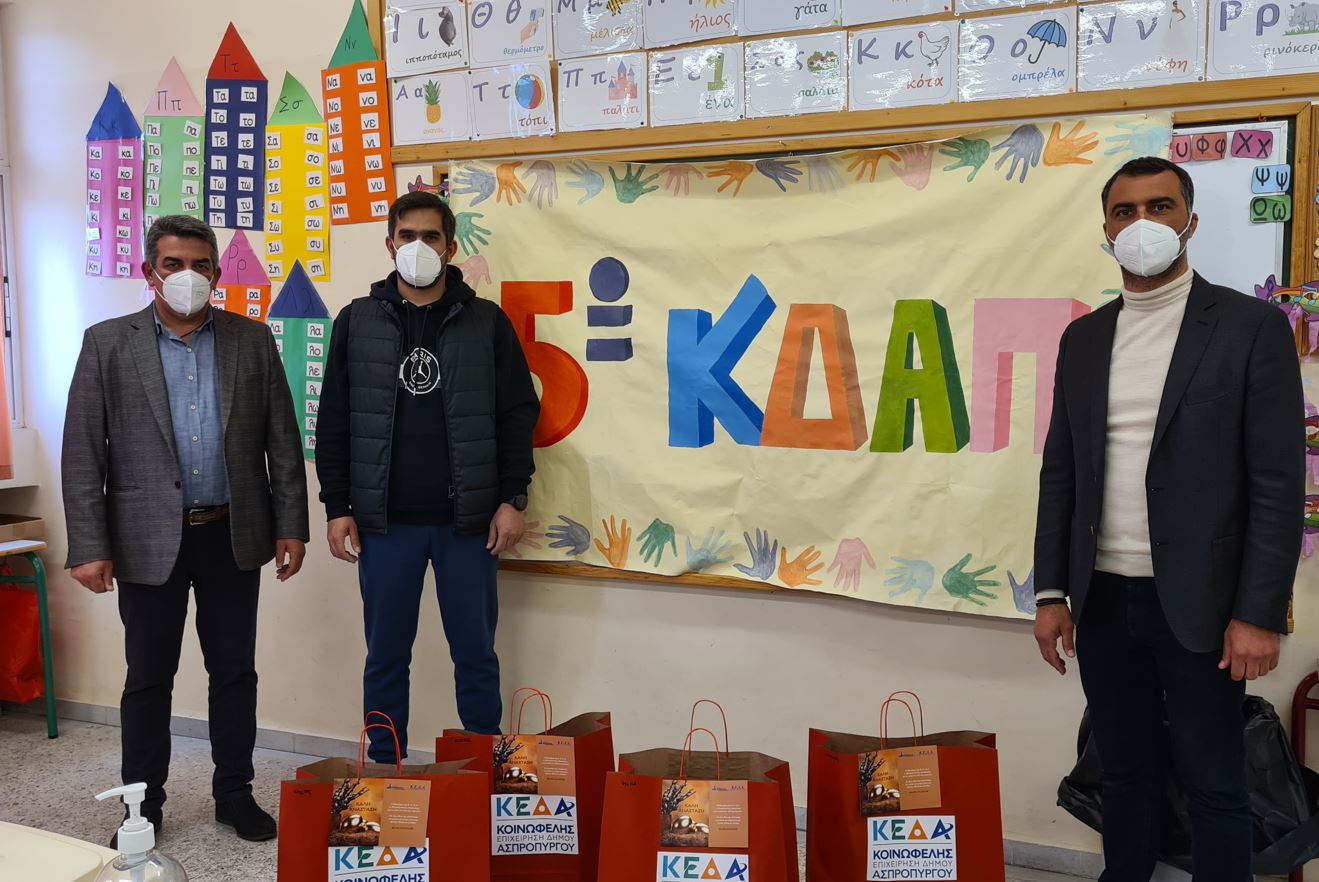 Άγιες μέρες του θείου πάθους και η Κοινωφελής Επιχείρηση του Δήμου Ασπροπύργου θέλησε να δώσει χαρά στα παιδιά των Βρεφικών Σταθμών και των Κέντρων Δημιουργικής Απασχόλησης της πόλης, μοιράζοντάς τους πασχαλινά δώρα. Ο Πρόεδρος της Κ.Ε.Δ.Α., κ. Αναστάσιος Παπαδόπουλος επισκέφθηκε όλους τους Βρεφικούς Σταθμούς συνομίλησε με τους Υπεύθυνους ανταλλάσσοντας ευχές για το Πάσχα.
