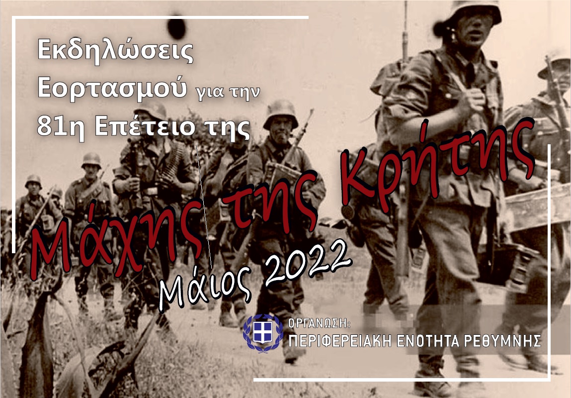 Από την Περιφερειακή Ενότητα Ρεθύμνης, ανακοινώνεται το πρόγραμμα των εκδηλώσεων εορτασμού της 81ης Επετείου της Μάχης της Κρήτης, που έχει ως εξής: