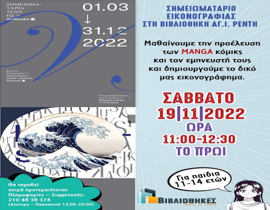 Ο κύκλος ξεκινά το Σάββατο 19 Νοεμβρίου στις 11 το πρωί με το Σημειωματάριο Εικονογραφίας. Τα παιδιά θα μάθουν την προέλευση των MANGA κόμικς και τον εμπνευστή τους και θα δημιουργήσουν το δικό τους εικονογράφημα.