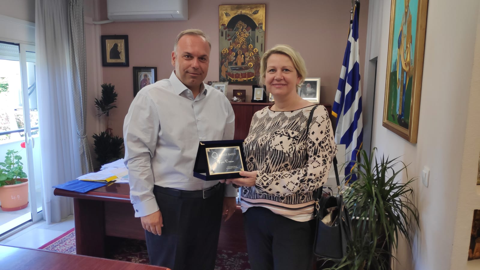 Μετά το πέρας της συνάντησης ο Δήμαρχος Θάσου κ. Ελευθέριος Κυριακίδης τίμησε εκ μέρους του Δήμου Θάσου την TUI AG, διά της απονομής τιμητικής πλακέτας στην εκπρόσωπό της κα. Frederique Klaver, για την διαχρονική παρουσία της TUI AG στη Θάσο.