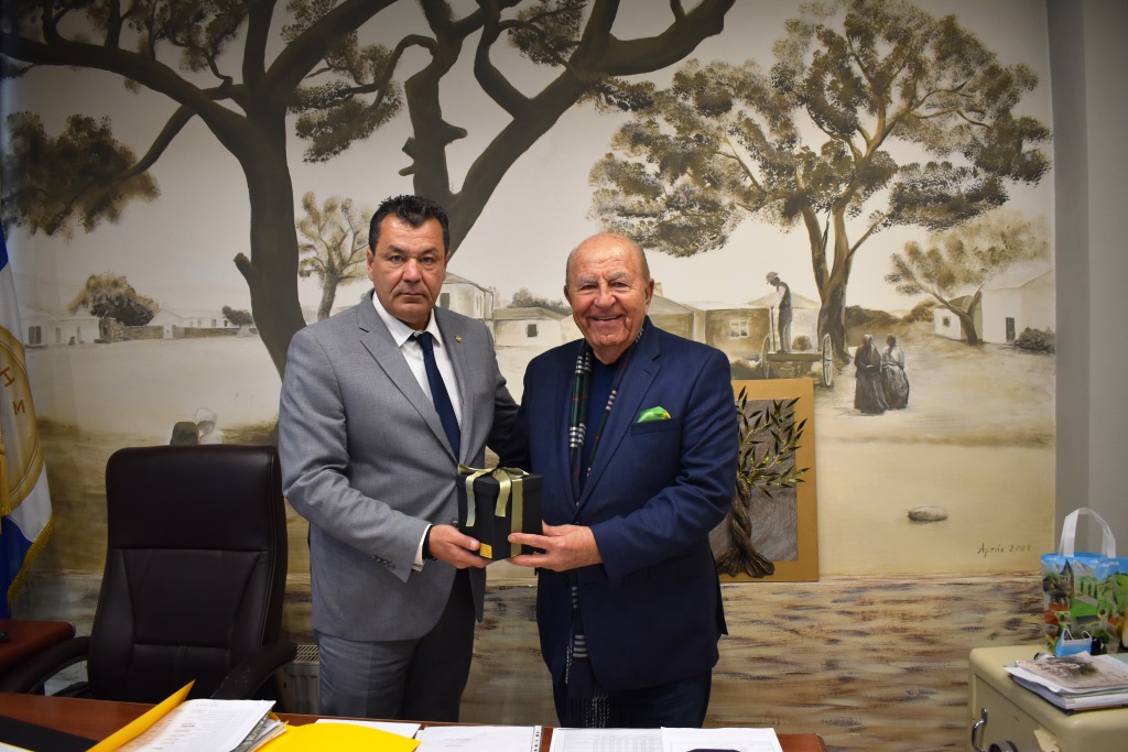 Ο Δήμαρχος Φυλής κατά τη λήξη της άκρως ενδιαφέρουσας συνάντησης παρέδωσε στον κ. Chris Spirou αναμνηστικό δώρο ενώ οι δυο τους έδωσαν τα χέρια για την έναρξη μιας δημιουργικής συνεργασίας.