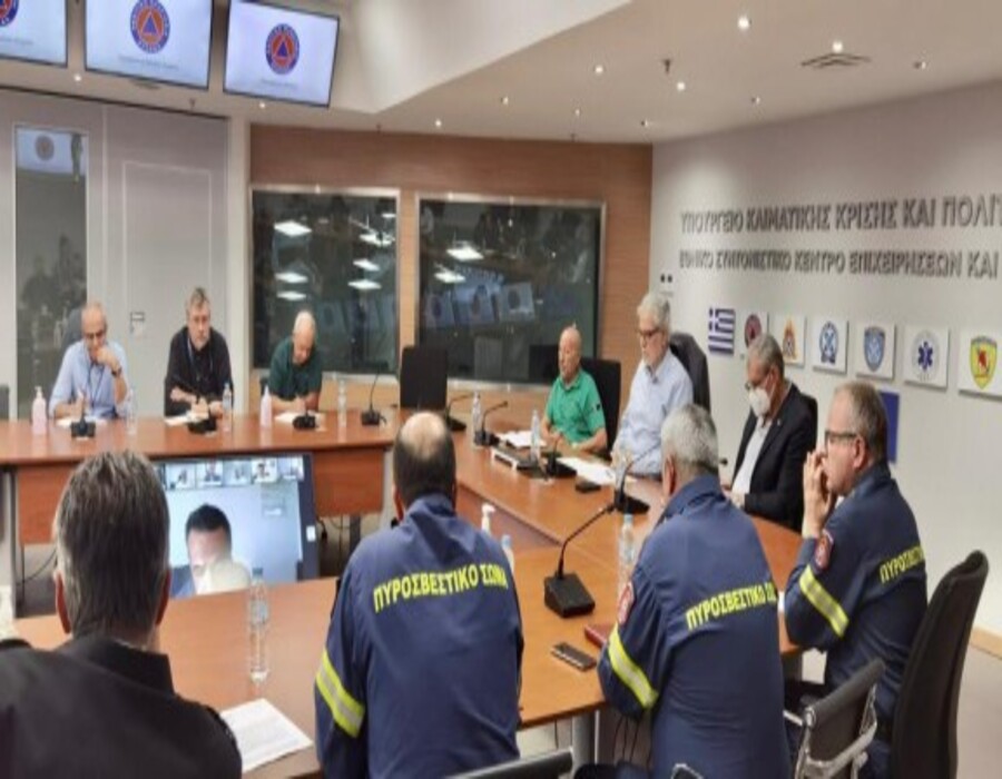 Στη σύσκεψη, η οποία πραγματοποιήθηκε μέσω τηλεδιάσκεψης, μετείχαν ο Υφυπουργός Κλιματικής Κρίσης και Πολιτικής Προστασίας, Ευάγγελος Τουρνάς, ο Υφυπουργός Προστασίας του Πολίτη, Ελευθέριος Οικονόμου, ο Γενικός Γραμματέας Πολιτικής Προστασίας, Βασίλειος Παπαγεωργίου, ο Αρχηγός του Πυροσβεστικού Σώματος, Αντιστράτηγος Αλέξιος Ράπανος, ο Υπαρχηγός ΠΣ, Αντιστράτηγος Ιωάννης Πετρούτσος, καθώς και υψηλόβαθμα στελέχη του Πυροσβεστικού Σώματος. Συμμετείχαν, επίσης, ο Υποστράτηγος της Ελληνικής Αστυνομίας, Ελευθέριος Γκαρίλας, εκπρόσωποι του Υπουργείου Υποδομών και Μεταφορών και ο Γενικός Διευθυντής Συντονισμού της Γενικής Γραμματείας Πολιτικής Προστασίας, Φοίβος Θεοδώρου.