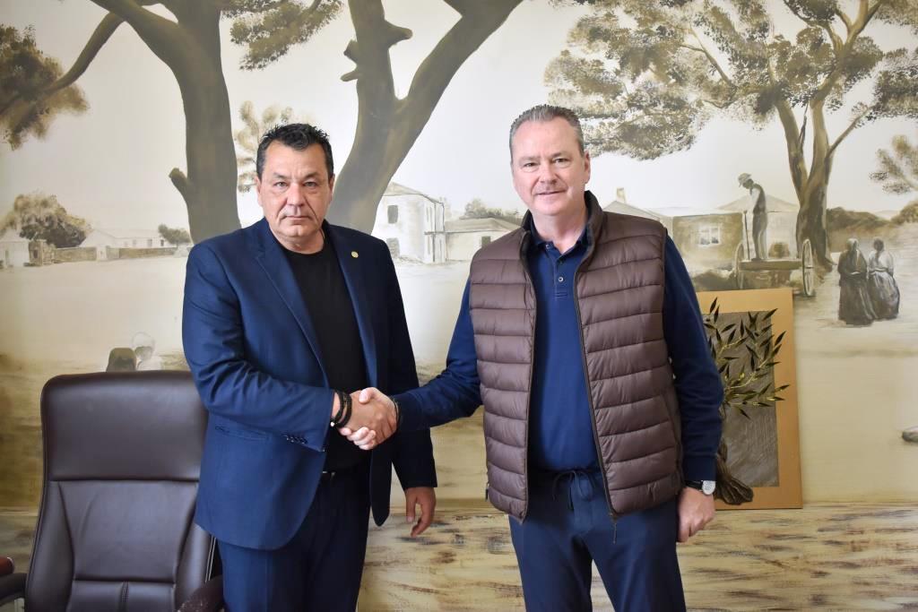 Τον Δήμαρχο Κατερίνης , Ολυμπιονίκη κι επί σειρά ετών Βουλευτή Πιερίας Κώστα Κουκοδήμο υποδέχθηκε το μεσημέρι της Τρίτης 5 Απριλίου 2022 ο Δήμαρχος Φυλής Χρήστος Παππούς.