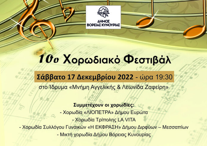 Ο Δήμος Βόρειας Κυνουρίας διοργανώνει το 10ο χορωδιακό φεστιβάλ.