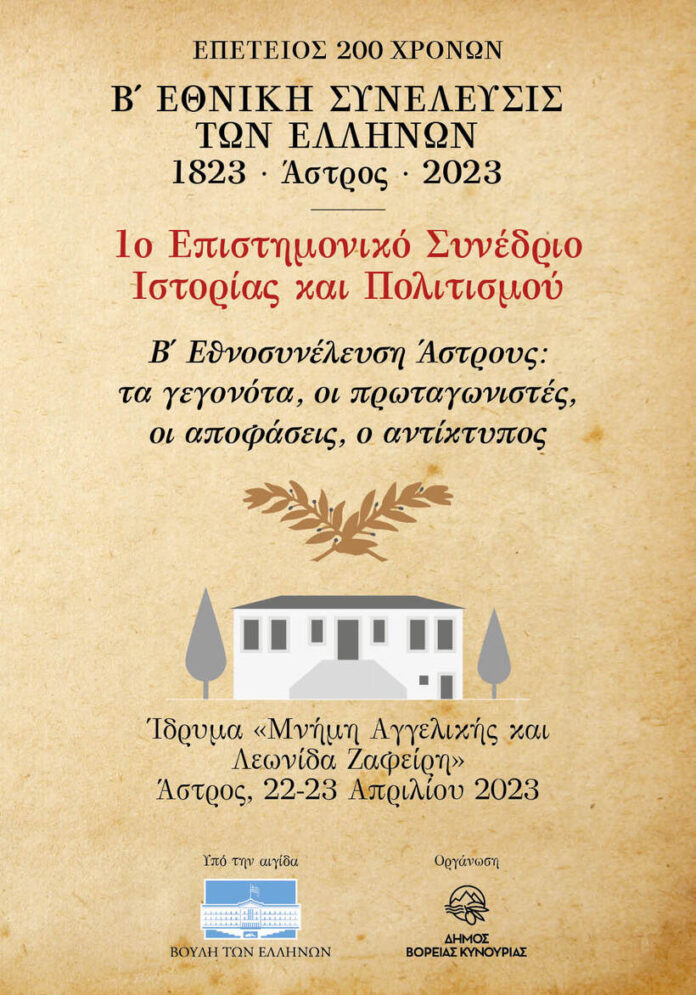 Ο Δήμος Βόρειας Κυνουρίας με αφορμή τη συμπλήρωση 200 ετών από τη Σύγκληση της Β΄ Εθνοσυνέλευσης στο Άστρος Κυνουρίας διοργανώνει το 1ο Επιστημονικό Συνέδριο Ιστορίας και Πολιτισμού με θέμα «Η Β΄ Εθνοσυνέλευση, τα γεγονότα, οι πρωταγωνιστές, οι αποφάσεις, ο αντίκτυπος της», με τη συμμετοχή Πανεπιστημιακών Καθηγητών και Ερευνητών, Νομικών και Ιστορικών.
