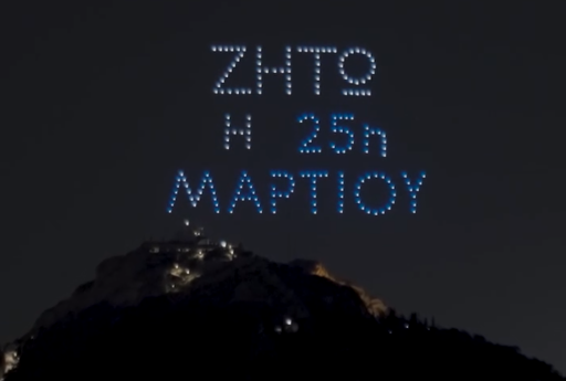 Ο ουρανός φωτίστηκε με τα χρώματα της ελληνικής σημαίας, με τα σύμβολα του Απελευθερωτικού Αγώνα, αλλά και με μηνύματα όπως «Ζήτω η 25η Μαρτίου». Για δέκα λεπτά, τα drone μετέτρεψαν τον ουρανό στο κέντρο της Αθήνας σε έναν πολύχρωμο καμβά με τρισδιάστατες φιγούρες, κινούμενα σχήματα, λογότυπα και κείμενα, που εναλλάσσονταν μεταξύ τους, με τη χρήση της σύγχρονης τεχνολογίας.