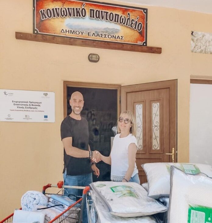 Η εταιρία ανακύκλωσης ειδών ένδυσης και υπόδησης East-West Greece, που έχει υπογράψει σύμβαση με το Δήμο Ελασσόνας, έχει θέσει προτεραιότητα να συμβάλλει στην στήριξη φορέων που βοηθάνε ευπαθείς ομάδες στις περιοχές που δραστηριοποιείται και για το λόγο αυτό στηρίζει έμπρακτα το Κοινωνικό Παντοπωλείο του Δήμου Ελασσόνας, προσφέροντας τρόφιμα και λευκά είδη για την ανακούφιση συμπολιτών μας, σε συνεργασία με την Αντιδήμαρχο Διοικητικών, Κοινωνικής Πρόνοιας και Εξυπηρέτησης του Πολίτη κ. Φρόσω Καρκαβανίδου-Σκρέτα.