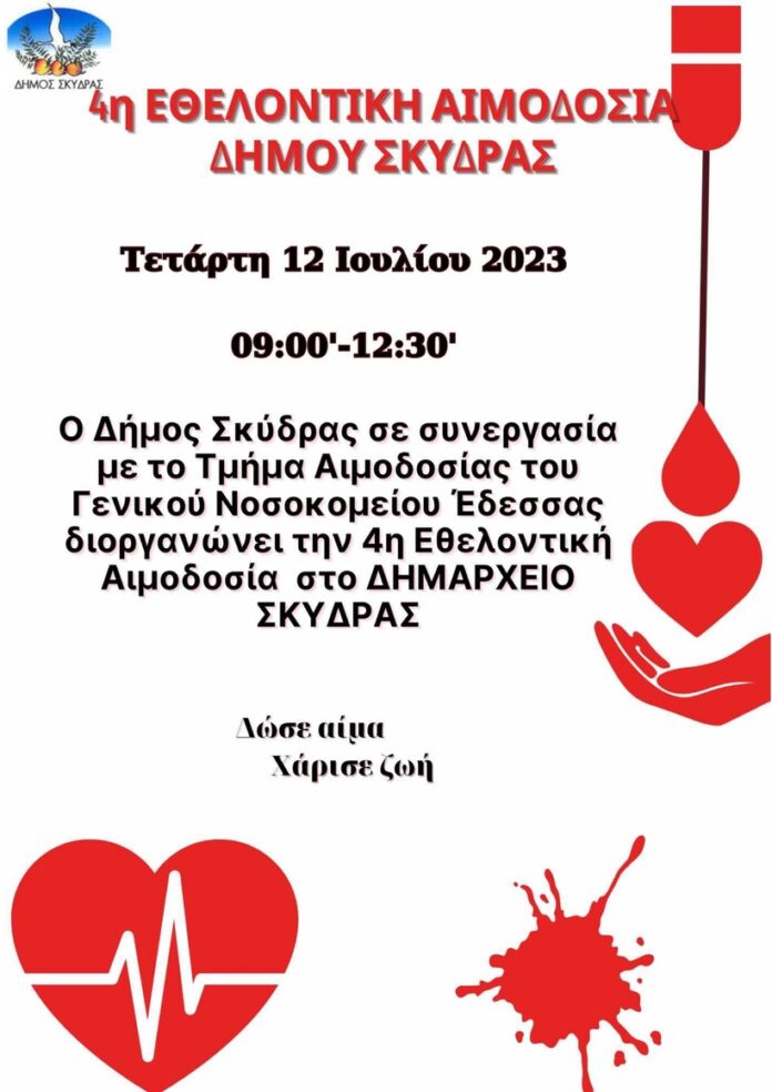 ΑρχικήΠεριφέρειες-ΔήμοιΠεριφέρεια Κεντρικής Μακεδονίας4η Εθελοντική αιμοδοσία στο Δήμο Σκύδρας