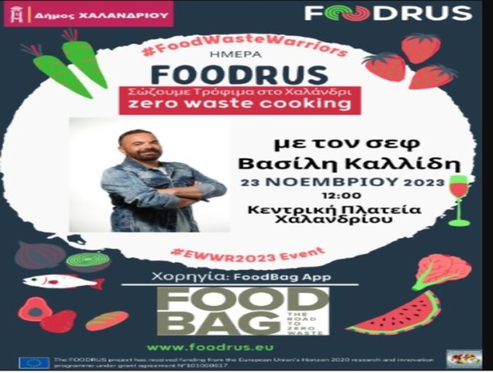 Εκδήλωση μαγειρικής με τον γνωστό σεφ Βασίλη Καλλίδη διοργανώνει ο Δήμος Χαλανδρίου, την Πέμπτη 23 Νοεμβρίου, στις 12:00, στην κεντρική πλατεία, στο πλαίσιο της ευρωπαϊκής εβδομάδας μείωσης αποβλήτων, 18 έως 26 Νοεμβρίου.