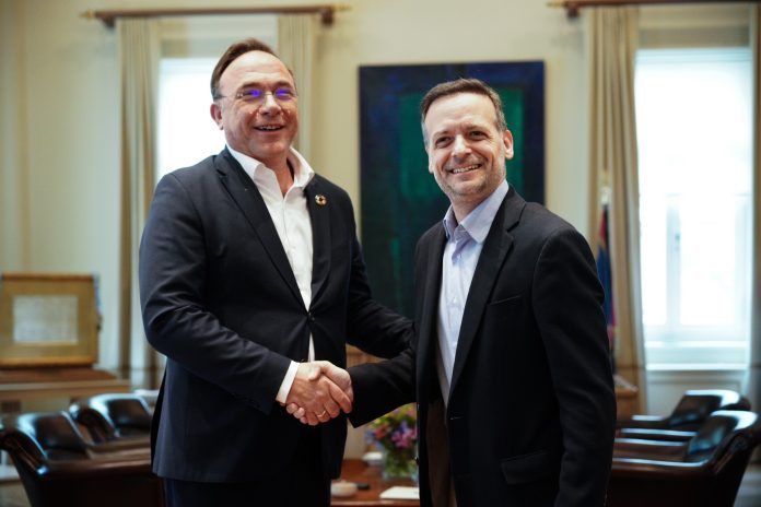 Ο δήμαρχος Αθηναίων Χάρης Δούκας συνάντησε τον ευρωβουλευτή των Πρασίνων και συνιδρυτή του πολιτικού φορέα «ΚΟΣΜΟΣ», Πέτρο Κόκκαλη, στο γραφείο του στο Δημαρχείο Αθηνών, στην Πλατεία Κοτζιά.