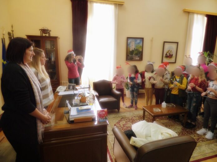 Τους μικρούς μαθητές υποδέχθηκαν η Πρόεδρος του Δημοτικού Συμβουλίου Ανατολικής Μάνης κα Γεωργία Λυροφώνη και η Αντιδήμαρχος Πολιτισμού κα Ελένη Δρακουλάκου, οι οποίες αντάλλαξαν μαζί τους ευχές για ευτυχισμένα Χριστούγεννα και καλή χρονιά, τονίζοντας ότι ο Δήμος θα στέκεται πάντα αρωγός σε ό,τι χρειαστούν.