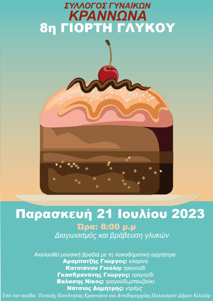 Αύριο Παρασκευή 21 Ιουλίου και ώρα 8:00 μ.μ. ξεκινάει ένα ταξίδι γλυκών γεύσεων στο σχολείο του Κραννώνα στην 8η γιορτή γλυκού που διοργανώνει ο Σύλλογος Γυναικών.