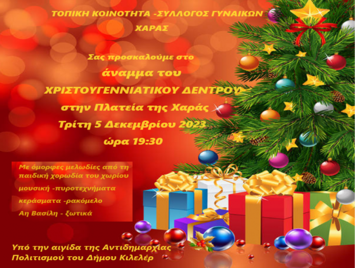Την Τρίτη επίσης στις 19:30, η Τοπική Κοινότητα και ο Σύλλογος Γυναικών, υπό την αιγίδα της Αντιδημαρχίας Πολιτισμού του Δήμου Κιλελέρ, ανάβουν το Χριστουγεννιάτικο δέντρο. Αη Βασίλης και ξωτικά, όμορφες μελωδίες από την παιδική χορωδία του χωριού, μουσική, πυροτεχνήματα, κεράσματα και ρακόμελο θα δημιουργήσουν γιορτινή ατμόσφαιρα.