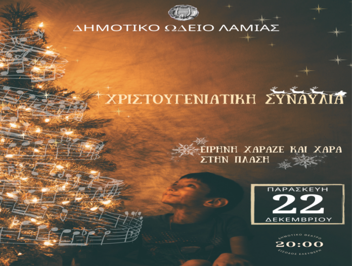Όπως κάθε χρόνο, έτσι και φέτος το Δημοτικό Ωδείο Λαμίας διοργανώνει την Χριστουγεννιάτικη Συναυλία του,με τίτλο «Eιρήνη χάραζε και χαρά στην πλάση», που πλέον αποτελεί θεσμό για την πόλη μας τα τελευταία 21 χρόνια, την Παρασκευή  22 Δεκεμβρίου 2023 και ώρα 8:00 μ.μ. στο Δημοτικό Θέατρο Λαμίας.