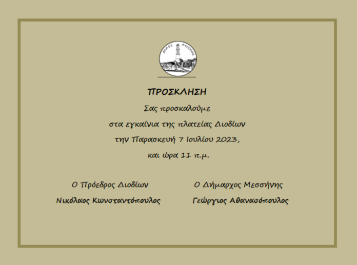 Δήμος Μεσσήνης: Εγκαίνια πλατείας Διοδίων-πρόσκληση