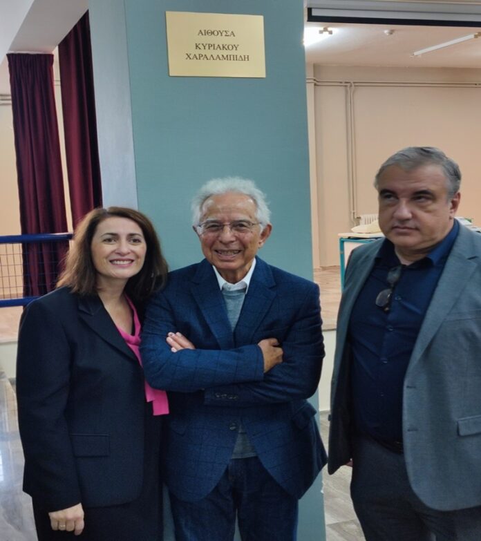 Σε μία συγκινητική εκδήλωση αφιερωμένη στον διακεκριμένο Έλληνα ποιητή της Κύπρου Κυριάκο Χαραλαμπίδη, η αίθουσα εκδηλώσεων του 1ου Γυμνασίου Μεσσήνης, ονομάστηκε σήμερα Τετάρτη 23 Νοεμβρίου σε «Αίθουσα Κυριάκου Χαραλαμπίδη», παρουσία του ίδιου του ποιητή.