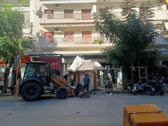 Η Δημοτική Αρχή της Πάτρας, εφαρμόζοντας την πολιτική της για την απρόσκοπτη κίνηση όλων των δημοτών στα πεζοδρόμια της πόλης μας, συνεχίζει, με τις υπηρεσίες του Δήμου, την αποξήλωση περιπτέρων, που για πολλά χρόνια παραμένουν κλειστά και εγκαταλειμμένα.