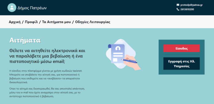 Όσοι επιθυμούν να υποβάλλουν ηλεκτρονικά το αίτημά τους και να παραλάβουν μια βεβαίωση ή ένα πιστοποιητικό μέσω e-mail, πρέπει να κάνουν εγγραφή με κωδικούς TaxisNet, επισυνάπτοντας τα απαιτούμενα δικαιολογητικά.