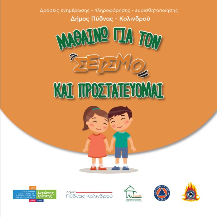 Ο Δήμος Πύδνας-Κολινδρού στα πλαίσια ενημέρωσης – πληροφόρησης – ευαισθητοποίησης, έχει προγραμματίσει 10 ενημερωτικές – ημερίδες (5 με φυσική παρουσίαση και 5 με απομακρυσμένη) – με σκοπό την εκπαίδευση των πολιτών σε θέματα αντισεισμικής προστασίας. Η ευαισθητοποίηση όλου του πληθυσμού στο συγκεκριμένο θέμα, καθώς κι η λήψη εκ μέρους των πολιτών των κατάλληλων μέτρων για τη βελτίωση της ασφάλειας τους είναι ένα κρίσιμο ζήτημα για όλα τα κοινωνικά σύνολα. Μέσα από τη δράση επιδιώκεται η εξασφάλιση της συμμετοχικότητας, της αποδοχής και της χρήσης του οφέλους του αισθήματος ασφαλείας από τους κατοίκους του Δήμου.