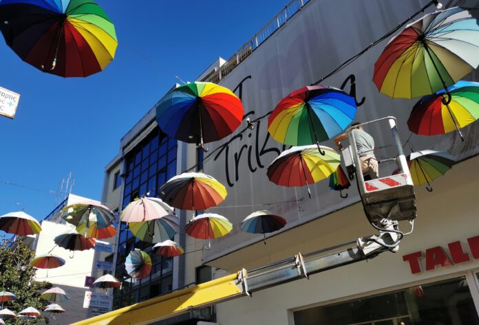 Με νέες -επομένως πιο «φωτεινές – ομπρέλες «στολίστηκε» η οδός Απόλλωνος στα Τρίκαλα. Με τον καιρό και τα καιρικά φαινόμενα, κάποιες ομπρέλες στον συγκεκριμένο εμπορικό δρόμο των Τρικάλων, είχαν φθαρεί.