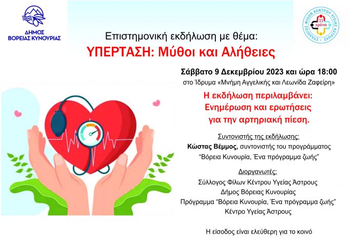 Δήμος Βόρειας Κυνουρίας: Επιστημονική εκδήλωση με θέμα «Υπέρταση: Μύθοι και αλήθειες»