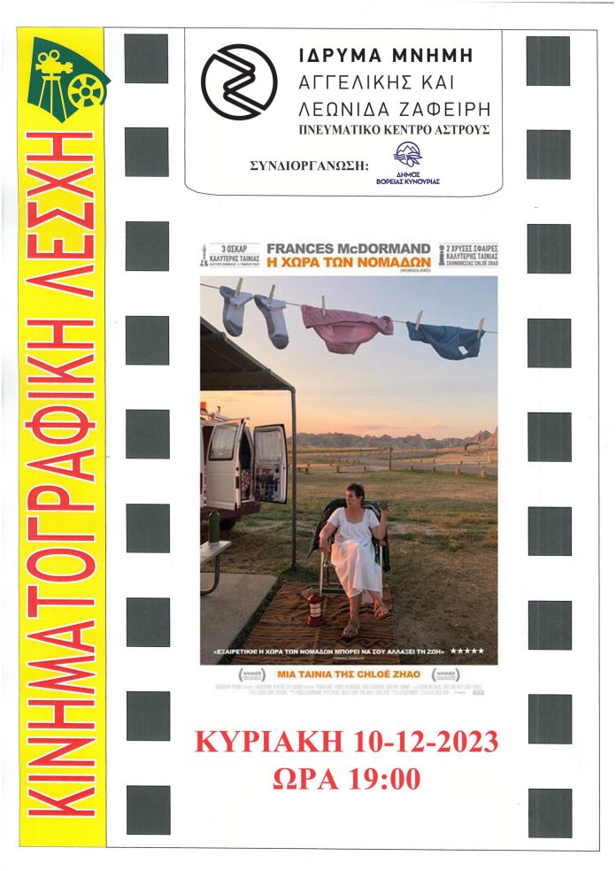 Την Κυριακή 10 Δεκεμβρίου και ώρα 19:00 θα πραγματοποιηθεί η προβολή της ταινίας  «Η Χώρα των Νομάδων».