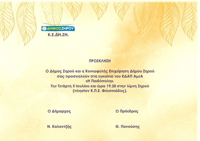 Δήμος Ζηρού: Πρόσκληση στα εγκαίνια του ΚΔΑΠ ΑμεΑ
